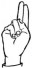 На ћирилици написано СРЂАН ОЛУЈИЋ састоји се из 11 слова [?]. Исписано ћириличном једноручном азбуком за глувонеме: